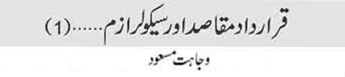 In his questions he had quoted half a dozen sections and asked if 'the self proclaimed broadminded' people were willing to accept the supremacy of those sections, considering them part and parcel of the Constitution of Pakistan. This humble writer has selected Section 2(a) from the slightly long list. The sub-section A of Section 2 of the Constitution of Pakistan is a gift of the dictatorship of General Ziaul Haque. He had declared the Objectives Resolution approved by the first Legislative Assembly of Pakistan on March 12, 1949 an important part of the Constitution by including the preface to the original constitution of 1973 in it. --Wajahat Masood