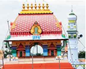 While the priests at the Peetham go about chanting their slokas, the prayers go on at the mosque next door simultaneously. One does not stop for the other nor disturb the other. The prayers continue in unison. The prayers begin with clockwork precision every day and are a celebration of the harmonious coexistence of two religions.