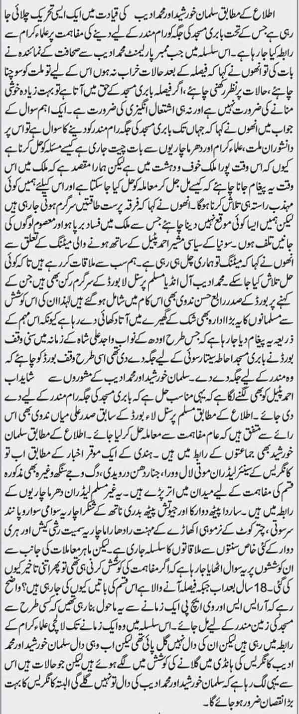 Urdu Press unhappy with efforts to defuse impending Babri crisis