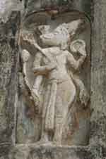 A number of stone images and other things mostly in demolished condition are lying scattered in the precinct of the Hayagriba-Madhava temple. Among these a few stone slabs with lion motif are the most remarkable pieces of architecture. These are said to be the parts of an Ashokan pillar installed in the originals Buddhist chaitya, temple. Another masterpiece of art was one simhasana. The simhasana was decorated with winged lions made of ivory, in its four corners. Today the simhasana is not there but the broken pieces are lying unnoticed in an interior room of the temple. There are altoigether five images in the grbhagriha: Bura-Madhava, Hayagriba-Madhava, Calanta-Madhava, Vasudeva and Garuda.