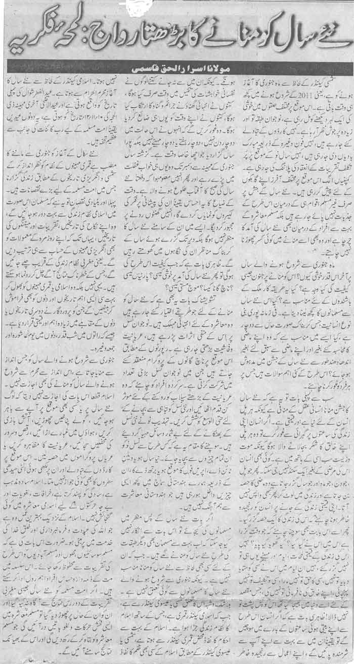 ... like other communities, many Muslims have also started celebrating the New Year whereas celebrating the New Year is not permissible in any way for the Muslims as Muslims have nothing to do with a new year beginning with January. Undoubtedly, it is associated with some solar or Christian calendar whereas the Islamic calendar is a lunar one with which Islamic way of life is associated. Many of the instructions of Islam are linked to the lunar calendar alone and no instructions are based on the solar or Christian calendar. According to the Islamic calendar, the New Year begins with Muharramul Haram. Eidul Fitr falls on the first day of the month of Shawwal and Eidul Adha falls on the tenth, eleventh and twelfth of the last month of Zul hajja. The two Eids are definitely two great gifts from God. -- Maulana Asrarul Haq Qasmi (Translated from Urdu by New Age Islam Edit Desk)