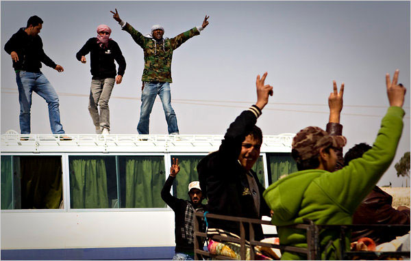 URL: http://www.newageislam.com/NewAgeIslamIslamicWorldNews_1.aspx?ArticleID=4349 --------- Qatar becomes 1st Arab country to fly over Libya Mar 26, 2011 TRIPOLI: Fellow Arab and African nations raised the international pressure on Libyan leader Muammar Gaddafi, with tiny Qatar flying the Arab world's first combat missions over his country and the African Union imploring him to move toward democratic elections. The military operation against Gaddafi, which on Friday also included airstrikes by British and French jets, remains a US-led operation, though NATO was preparing to assume at least some command and control responsibility within days. A Libyan government delegation meeting in Ethiopia with African leaders but not the rebels seeking Gaddafi's ouster said he is ready to talk with his opponents and accept political reform, possibly including elections. But the delegation also said Libya is committed to a ceasefire that Gaddafi's forces have flouted since the government announced it, and blamed the current violence on "extremists" and foreign intervention. NATO named Canadian Lt Gen Charles Bouchard to lead its Libyan operation, finalising what it hopes will be a unified command to oversee military action against the North African nation. http://timesofindia.indiatimes.com/world/middle-east/Qatar-becomes-1st-Arab-country-to-fly-over-Libya/articleshow/7793444.cms --------- Libyan Rebels Say They Have Retaken Ajdabiya After Night of Airstrikes By KAREEM FAHIM and DAVID D. KIRKPATRICK AJDABIYA, Libya — Rebels seized Ajdabiya on Saturday, government and rebel forces said, succeeding in an effort to retake this key town in the east following another night of allied air strikes against forces loyal to Col. Muammar el-Qaddafi. Libya’s deputy foreign minister, Khaled Kaim, acknowledged in a news conference that the Qaddafi government forces had “pulled back” from Ajdabiya and reiterated accusations that the international air strikes were killing civilians as they provided air cover for the advancing rebel forces. In Ajdabiya, hundreds of cars were seen streaming toward the strategic town, which had been in the control by government forces for almost two weeks. Three large tank transport carriers also headed toward the city. There were reports of pockets of fighting, and heavy damage could be seen in the eastern part of the city as the rebels advanced. “People are celebrating,” said Najib al-Mukasabi, who was driving out of Ajdabiya north toward Benghazi. “The west and east gates are liberated. They’re back in Brega,” he said, referring to the government troops. The rebel success in Ajdabiya came a week after coalition airstrikes began to enforce a U.N.-mandated no-fly zone over Libya, and followed preparations by NATO to assume leadership from the United States of the military campaign against Colonel Qaddafi’s forces. Allied officials on Friday scrambled to work out the precise command arrangements. The agreement came as President Obama, facing criticism from his political opponents, began trying to seize control of his message about the Libyan conflict. In his weekly address, Mr. Obama said on Saturday that the American mission was “clear and focused” and that while the American role would be limited, “We’re succeeding in our mission.” “Along with our allies and partners, we’re enforcing the mandate of the United Nations Security Council,” he said, noting that Qatar and the United Arab Emirates had each committed aircraft. “And as agreed this week, responsibility for this operation is being transferred from the United States to our NATO allies and partners. “As I pledged at the outset, the role of American forces has been limited,” he added. “We are not putting any ground forces into Libya. Our military has provided unique capabilities at the beginning, but this is now a broad, international effort. Our allies and partners are enforcing the no fly zone over Libya and the arms embargo at sea.” On Friday, Mr. Obama defended his handling of the Libya crisis in a White House meeting and conference call with more than 20 Democrat and Republican Congressional leaders. The White House also announced that he would give a speech to the nation on Libya on Monday night. And his two top foreign policy advisers — Secretary of State Hillary Rodham Clinton and Defense Secretary Robert M. Gates — prepared to appear on the Sunday talk shows to explain the administration’s Libya policy. Mr. Obama had come under criticism from Republicans in Congress for failing to provide a coherent explanation of the weeklong operation. Administration officials portray it as an already successful effort to prevent the Libyan leader from attacking his own people. But the military campaign has been dogged by friction over its ultimate mission, and which of the disparate countries involved should command the operation. As Mr. Obama said in his address, the allied effort had won rare military commitments in the Arab world on Friday when two Qatari fighter jets flew on patrol with the Western allies and the United Arab Emirates said that it would send warplanes to join them. NATO had agreed late Thursday that it would take over not only command and control of the no-fly zone, but also the much riskier campaign to protect civilians through aggressive coalition airstrikes on Colonel Qaddafi’s troops on the ground, the officials said. Details of the second part of the operation will be worked out in a formal military planning document in time for a meeting of coalition foreign ministers in London on Tuesday, the officials said. “It’s been handed over to military planners,” Mark Toner, a State Department spokesman, said on Friday. As the air campaign entered its seventh day, allied warplanes and Tomahawk cruise missiles pounded Libyan air defenses, communications posts and troops. At the Pentagon, Vice Adm. William E. Gortney, the director of the joint staff, said that the 