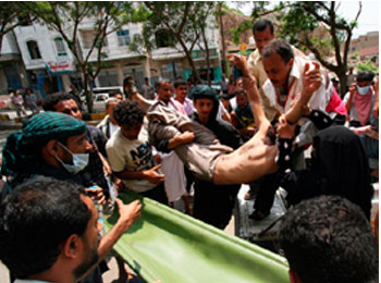 Violence erupted in Taiz after thousands of protesters marched through the city heading towards the Freedom Square, where youth demonstrators were staging a sit-in, Al Jazeera reported. The pan-Arab channel quoting provincial officials said that clashes broke out as the marchers passed the Governor’s headquarters, where troops barred their way baton charging them, bursting teargas and then opened fire, killing 17 persons on the spot.