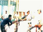 The last words of Sarfaraz Shah uttered in pain get recorded in the camera and we could hear and see that the young boy struggled for life until last few moments of his life. He still had hope that the killers had shot not to kill him and he could be saved with some quick medical aid. The last few seconds of the video ends with his cries for mercy to take him at least to the hospital and then he collapses on the ground all filled with his blood… again it resembles a site of animal sacrificed who could still smell the stench of its own fresh blood and perhaps expects mercy from those who stands there and watch the show. -- Sonia Wahab (Photo: Pakistan Rangers in uniform killing Sarfraz Shah)