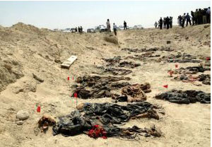 "The mass graves are crimes against humanity committed in 1987," said Human rights minister Mohammed Shia al-Sudani. "This is one of 84 sites listed at our ministry, and we have completed work on 34 of them," he said.