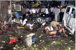 Photo: Victims of a bomb explosion lie on the ground outside the Opera House in Mumbai.